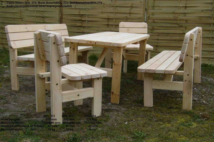 madera pino, natural o impregnada a presion DOL 373 mesa 1,50 m x 0,68 m DOL 374 silla DOL 372 banco 1,50 m